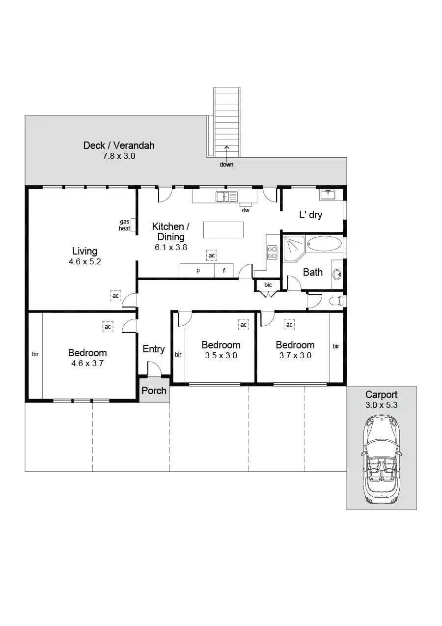 3 Bed • 1 Bath • 2 Car