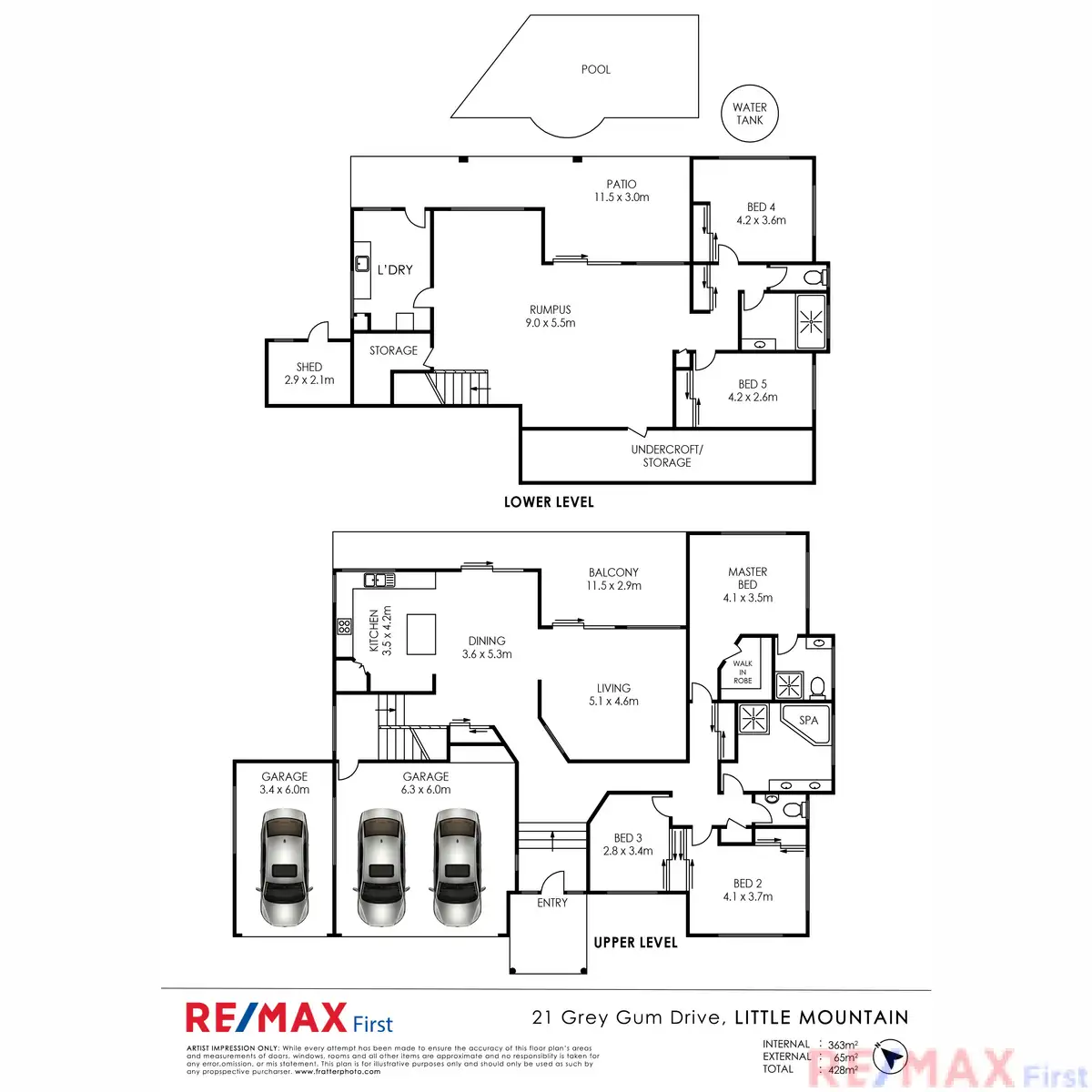 - Downstairs offers a massive rumpus area, two bedrooms, bathroom and large laundry