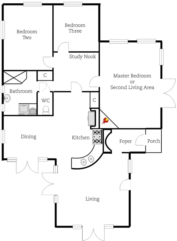Three bedrooms, spacious master with open fireplace, could be utilized as additional living or sunroom