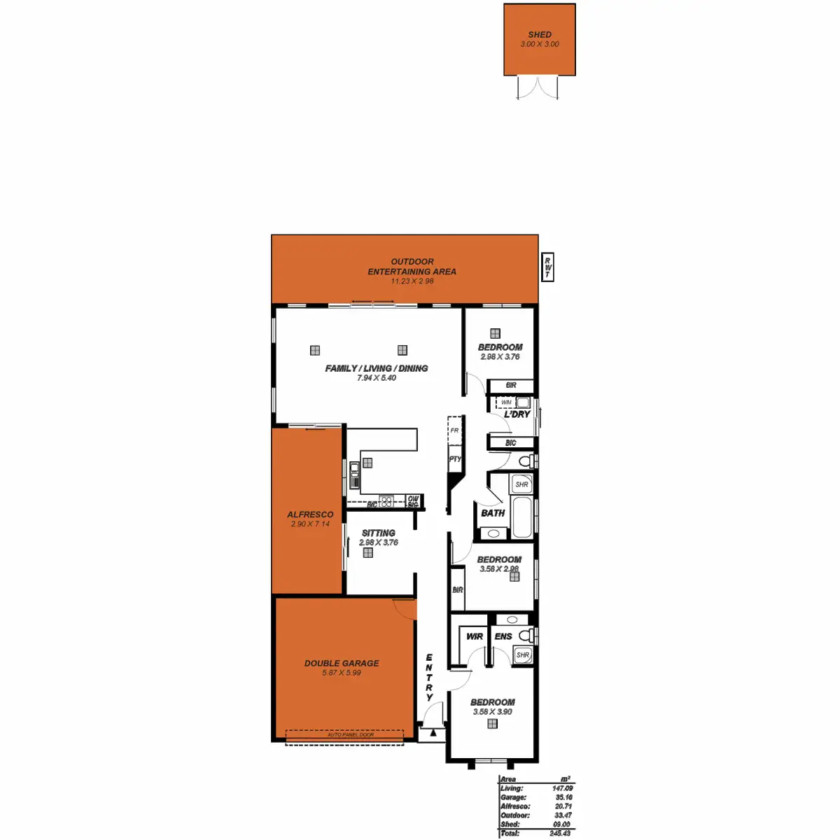 3 Bed • 2 Bath • 4 Car • 650m²