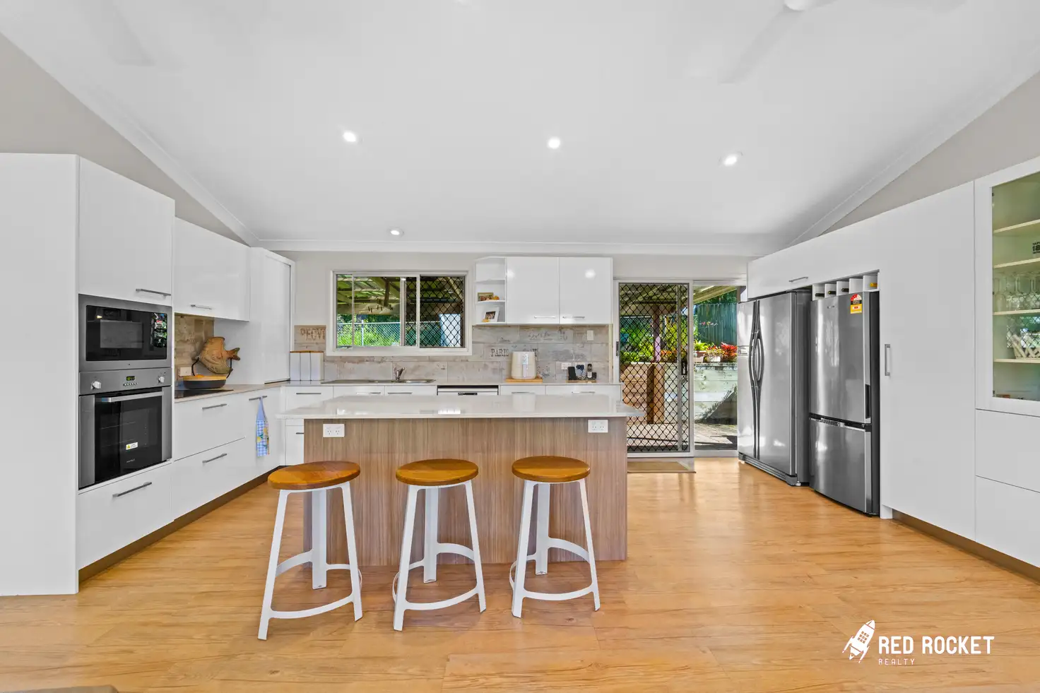 The expansive layout offers abundant air-conditioned living and dining areas, perfect for effortless family living. Neutral colour tones and premium flooring provide a timeless backdrop to suit any style of décor. At the heart of the home, the meticulously renovated kitchen features custom-built cabinetry, stone benchtops, and high-end stainless-steel appliances—including space for multiple fridges. Its thoughtful, practical design ensures ample storage and seamless interaction with the family during meal preparation.