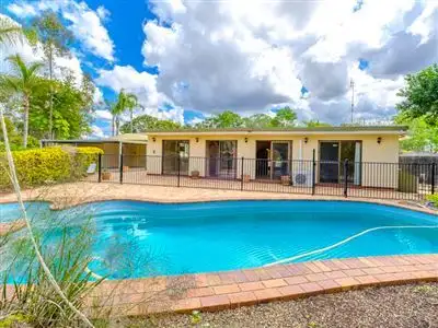 Land area: Land Area Ha: 1.55 Tenure: Freehold Property condition: Good Property Type: House House style: Lowset Garaging / carparking: Double lock-up Construction: Brick Walls / Interior: Brick, Gyprock Flooring: Tiles Window coverings: Blinds Property Features: Safety switch, Smoke alarms Kitchen: Original, Standard, Open plan, Double sink and Pantry Living area: Open plan Main bedroom: King, Built-in-robe and Ceiling fans Bedroom 2: Double and Built-in / wardrobe Bedroom 3: Double and Built-in / wardrobe Bedroom 4: Double and Built-in / wardrobe Additional rooms: Family Main bathroom: Separate shower Family Room: Ceiling fans Laundry: Separate Workshop: Combined Views: Private, Bush Outdoor living: Entertainment area (Covered), BBQ area, Deck / patio Fencing: Fully fenced Land contour: Flat Grounds: Tidy, Backyard access Sewerage: SepticLand details