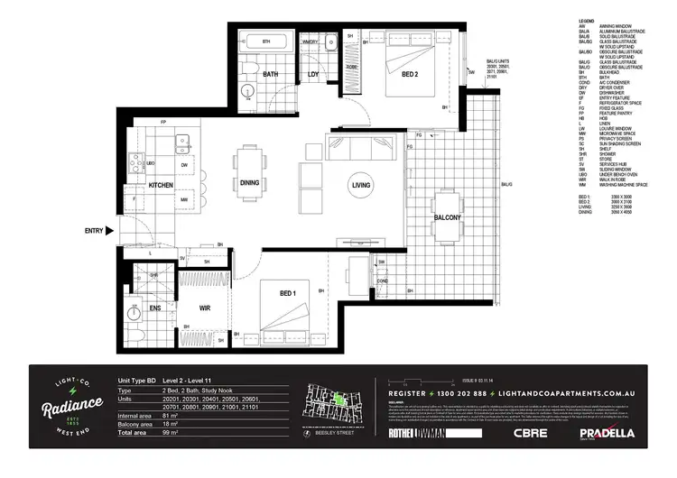 Apartment 21101 is ideally situated on the top floor in the Radiance building of Light + Co Apartments, and enjoys a stunning Northerly aspect with incredible uninterrupted city and green suburban views. Light + Co Apartments is an attractive industrially-urban residential complex which offers easy access every convenience imaginable. This stylish well-designed apartment offers a truly extraordinary abode to call home or a brilliant investment opportunity.