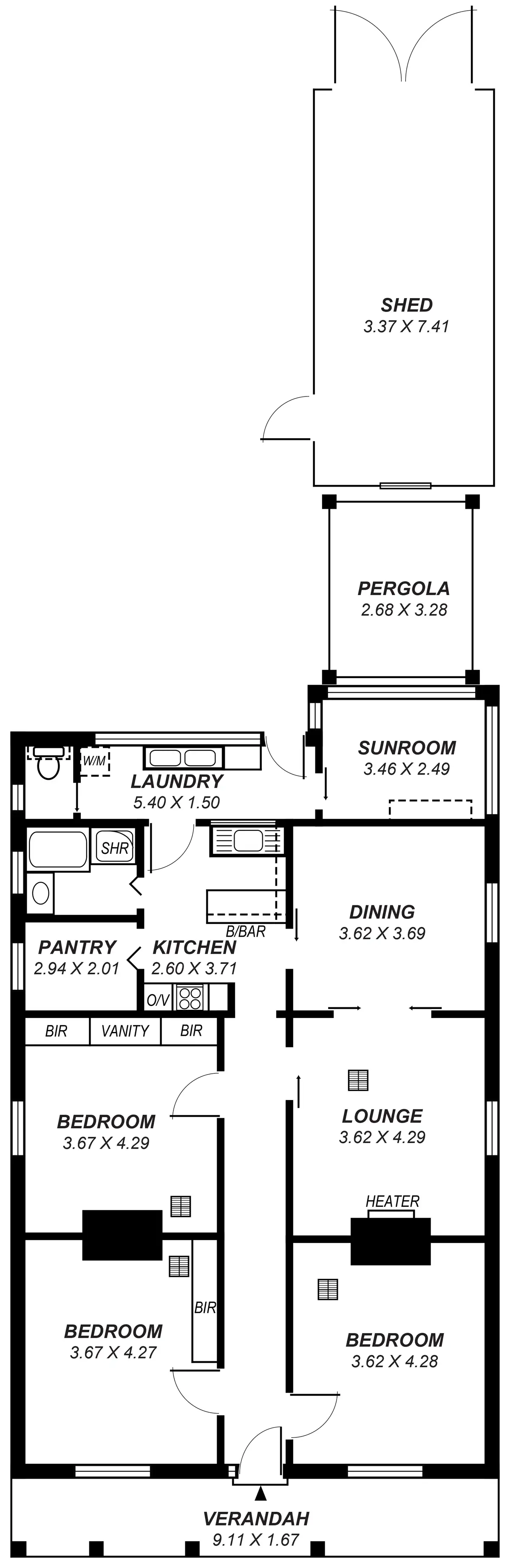3 Bed • 1 Bath • 1 Car • 447m²