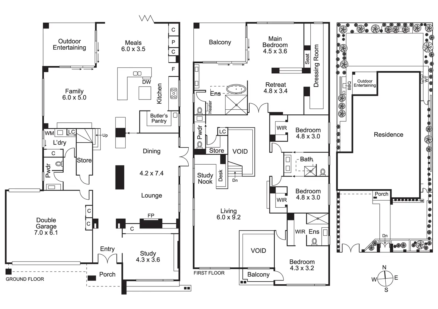 *4 robed bedrooms, palatial main with north-facing balcony, dressing room, and fully tiled ensuite featuring freestanding bath, twin vanity, walk-in shower and separate WC