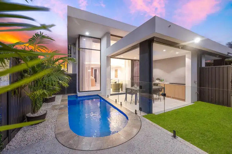 Designed for effortless entertaining, the outdoor space includes a covered entertainment area with a built-in BBQ, bar fridge, and sink, seamlessly connecting to the sparkling pool and lush grass yard. This home is equipped with state-of-the-art features, including solar power, individually zoned air conditioning in every room, and premium finishes throughout.