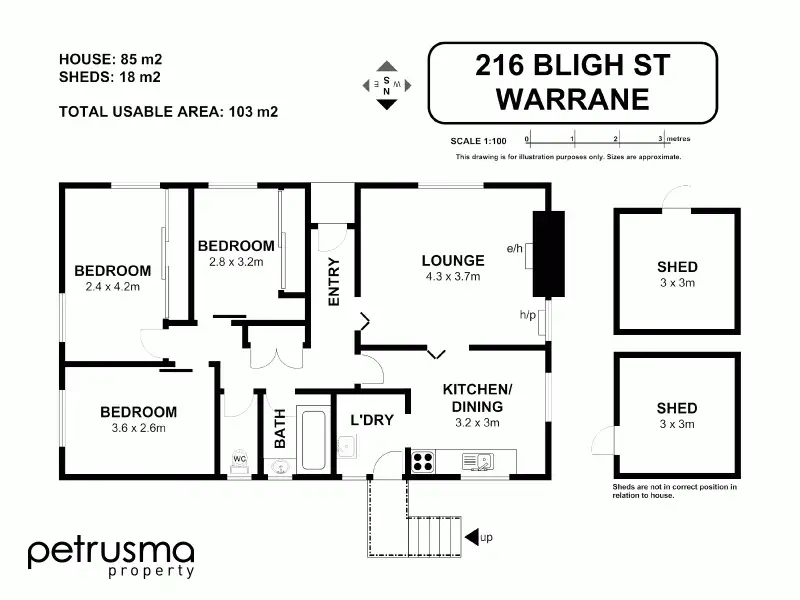 3 Bed • 1 Bath • 2 Car • 668m²