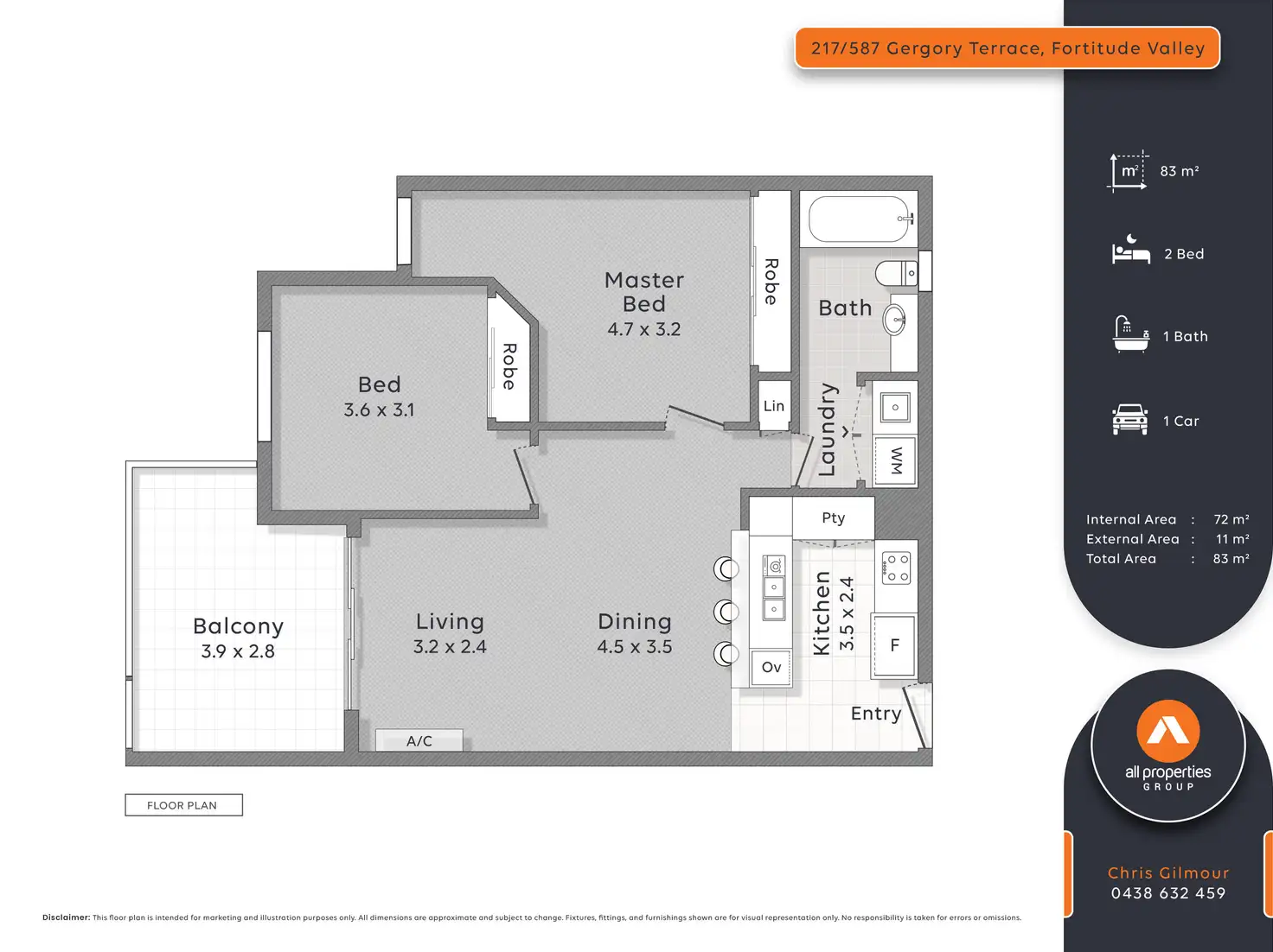 2 Bed • 1 Bath • 1 Car • 76m²