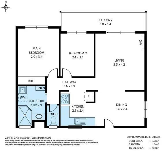 2 Bed • 1 Bath • 0 Car • 67m²