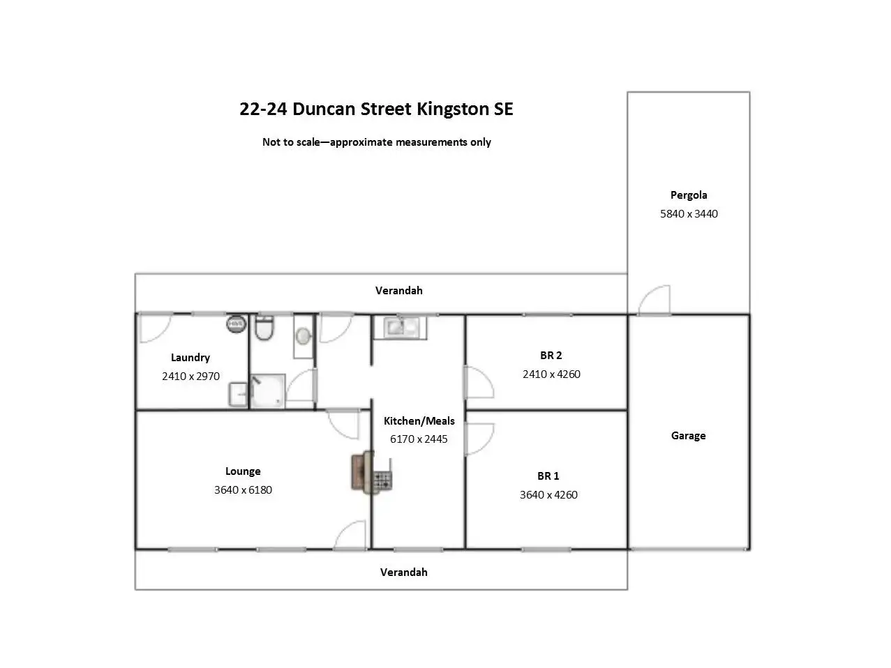 House has concrete foundation, with roof, verandahs, pergola and garage all in good condition.