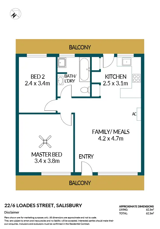 2 Bed • 1 Bath • 1 Car • 64m²