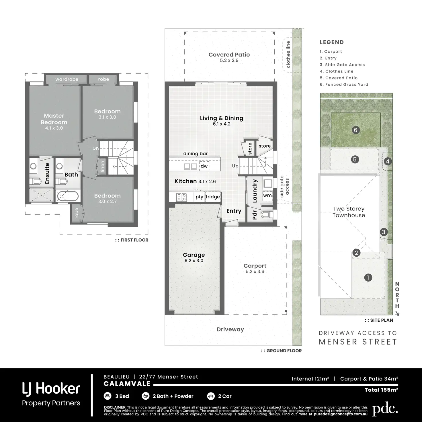- Secure single garage + adjacent single carport, covered rear patio overlooking easy-care yard