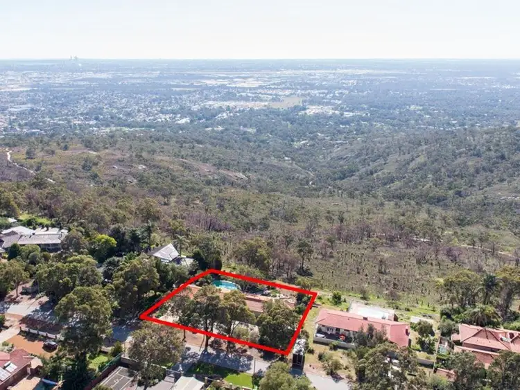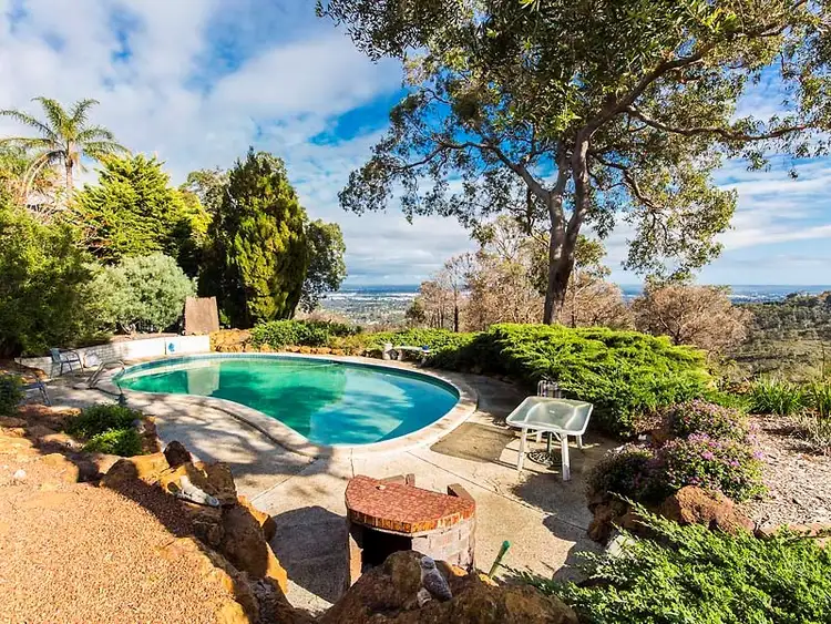 A stretch of unused and relatively level unused land beyond the pool fence is roughly 10m x 40m and is perfect for a lawn for the kids and/or a granny flat with the best views in Perth. This area can also have easy car access. The property overlooks natural bush land and gives you the feeling that you own a much larger block than just half an acre.