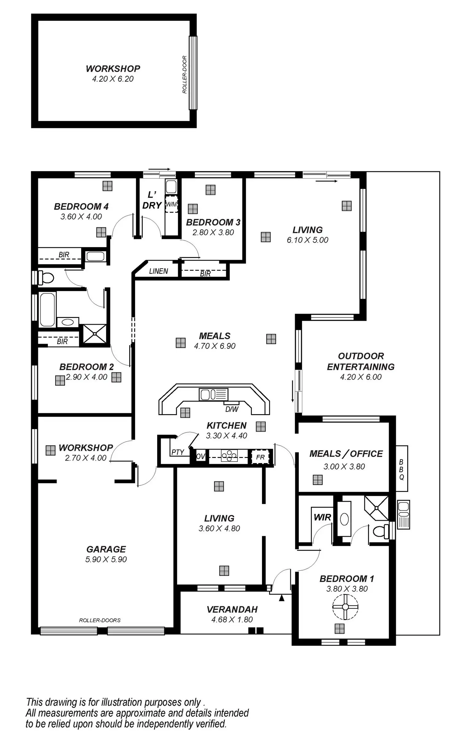 Dwelling Size: 285 sqm (NOT including external workshop or Pergola)