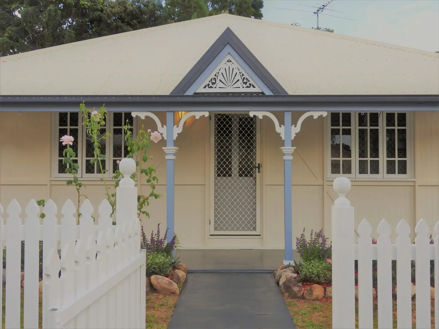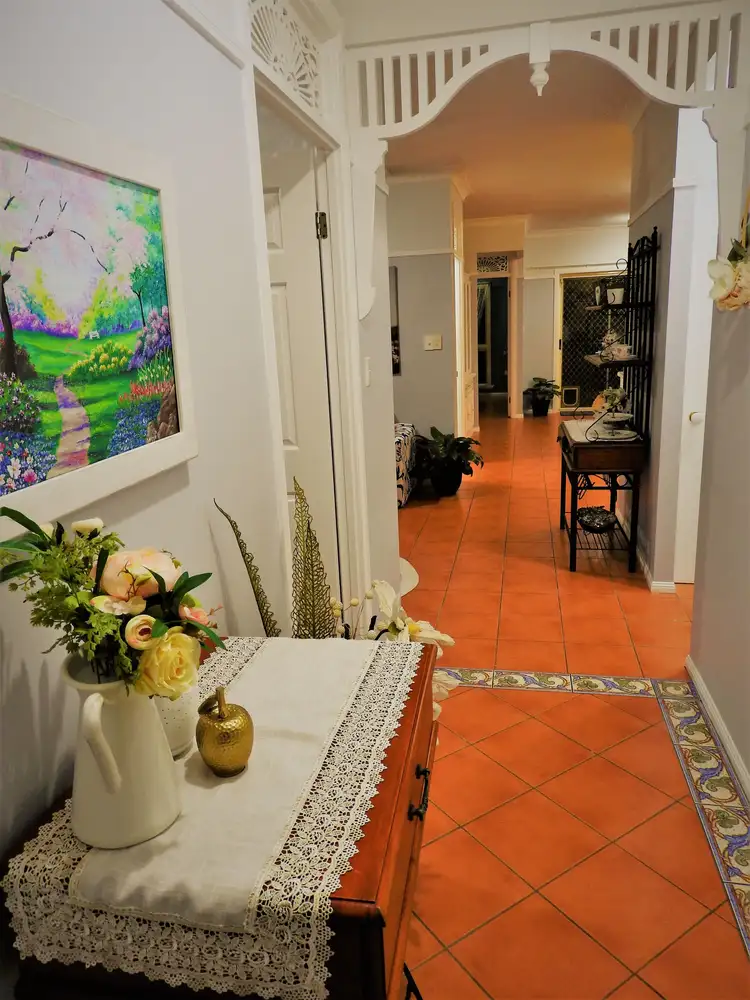 This gorgeous home has some unique characteristics with a Queensland colonial feel. It features decorative breezeways above the doors, the colonial arch in the entrance, and colonial trim on the walls with a unique front elevation.