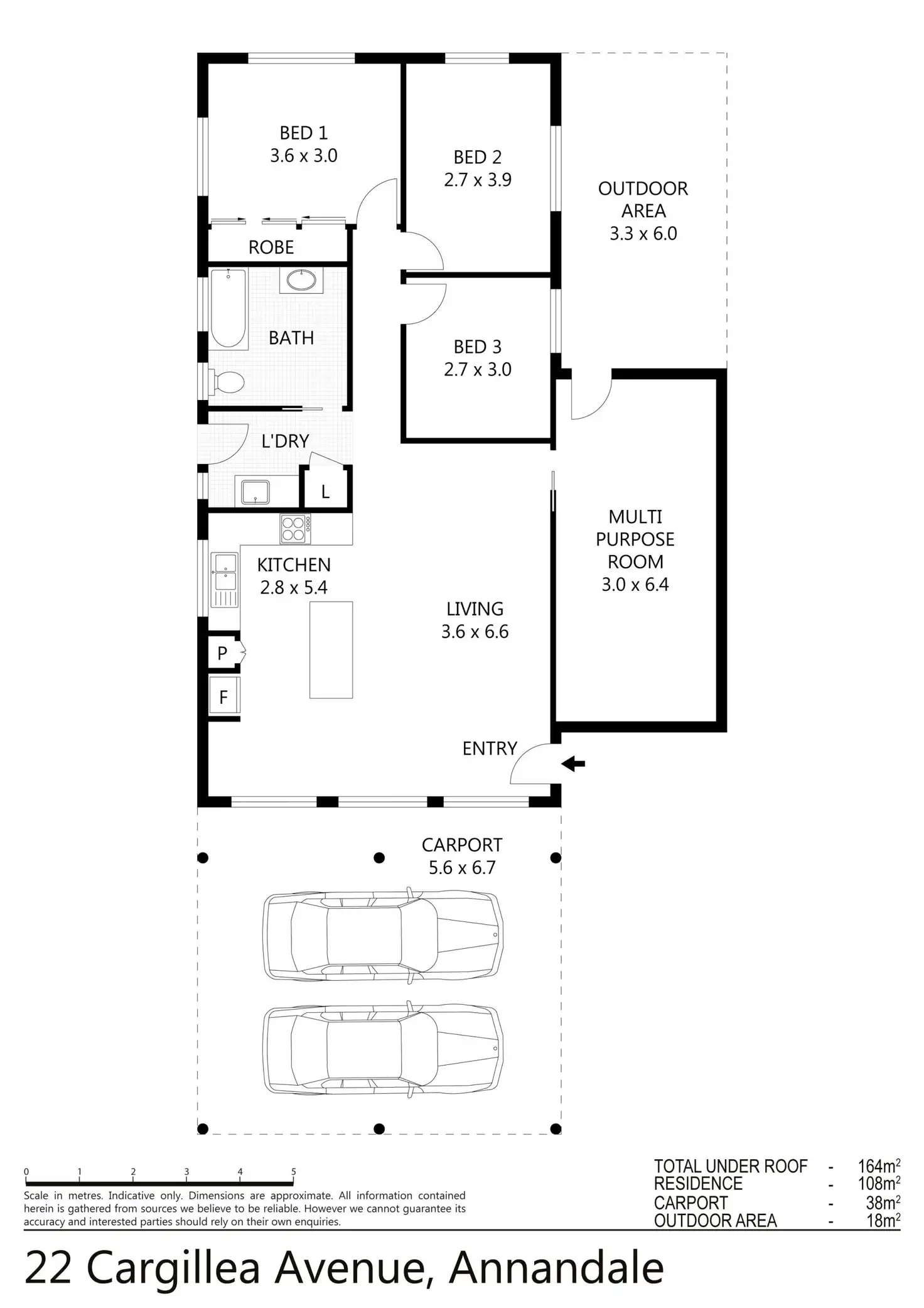 3 Bed • 1 Bath • 2 Car • 600m²