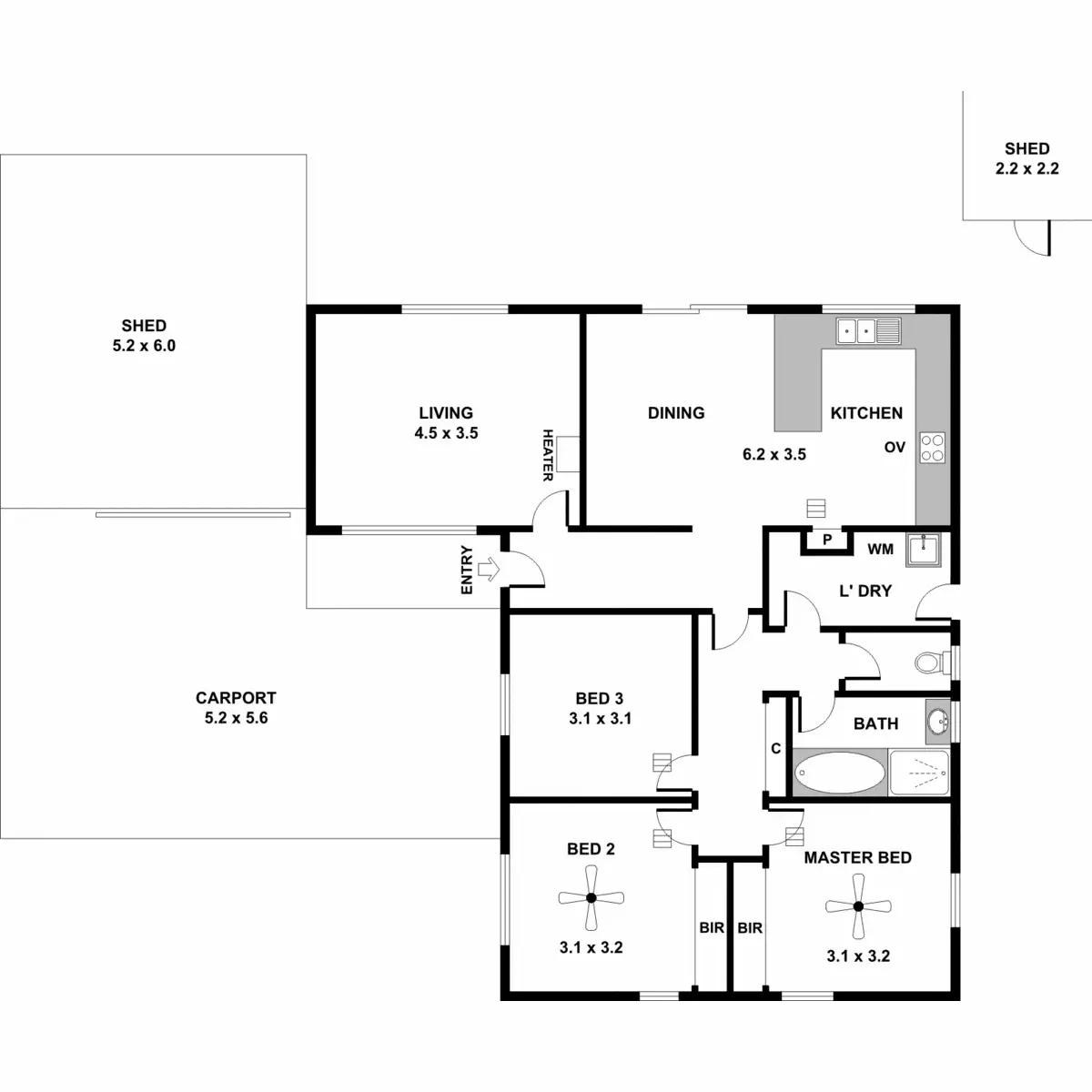 3 Bed • 1 Bath • 3 Car • 644m²