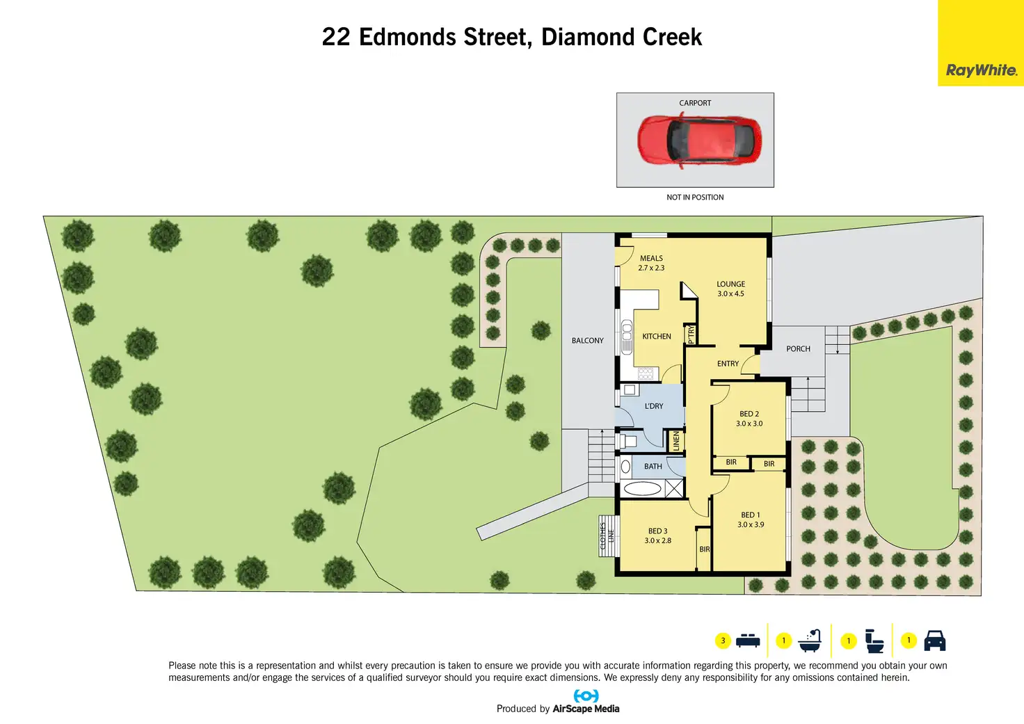 3 Bed • 1 Bath • 1 Car • 825m²