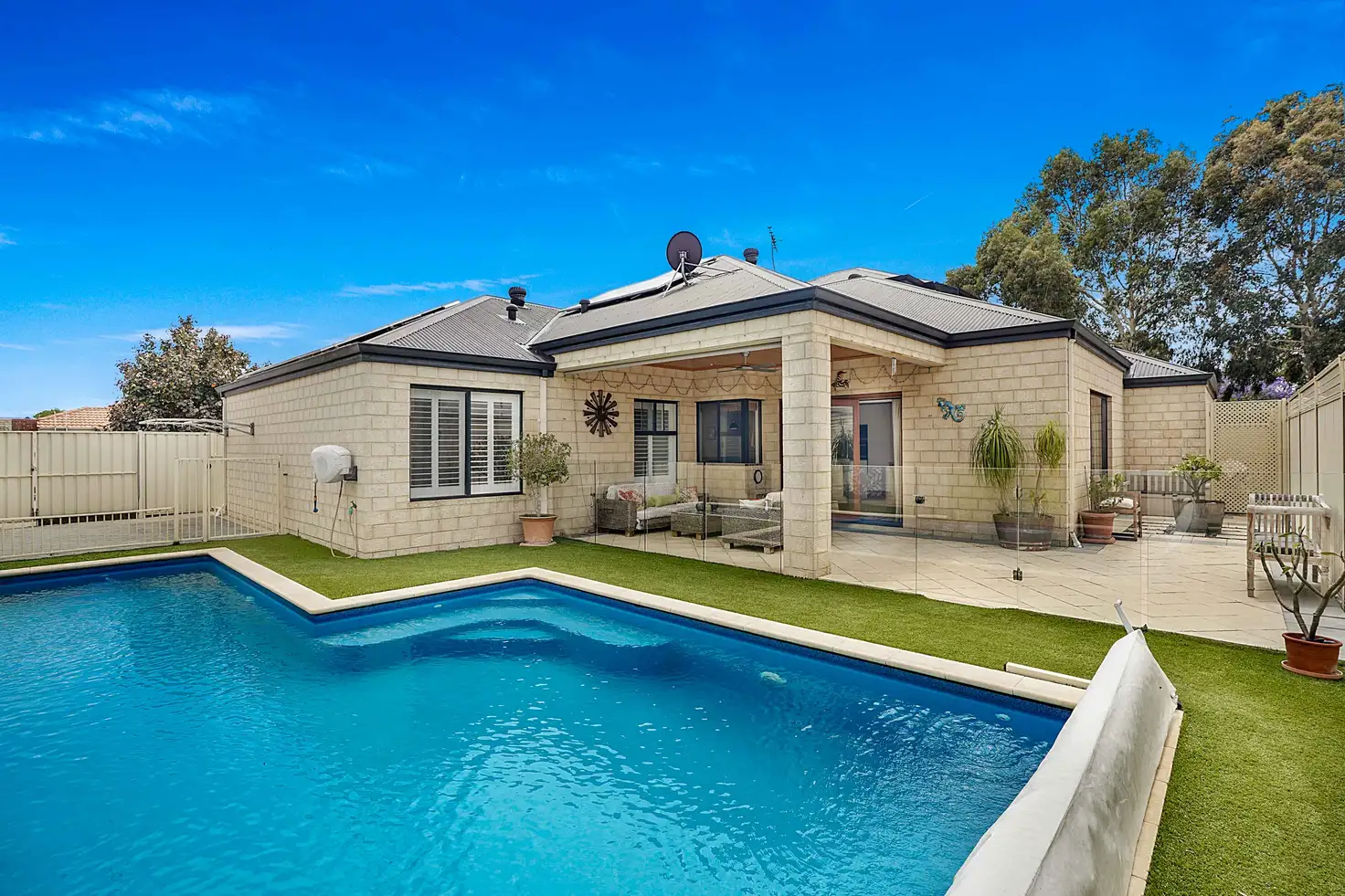 Outside, the patio area is an entertainer's dream, featuring a stunning below-ground swimming pool—perfect for hosting gatherings with friends. The low-maintenance garden and high fencing ensure your privacy and comfort, allowing you to enjoy this outdoor space year-round.