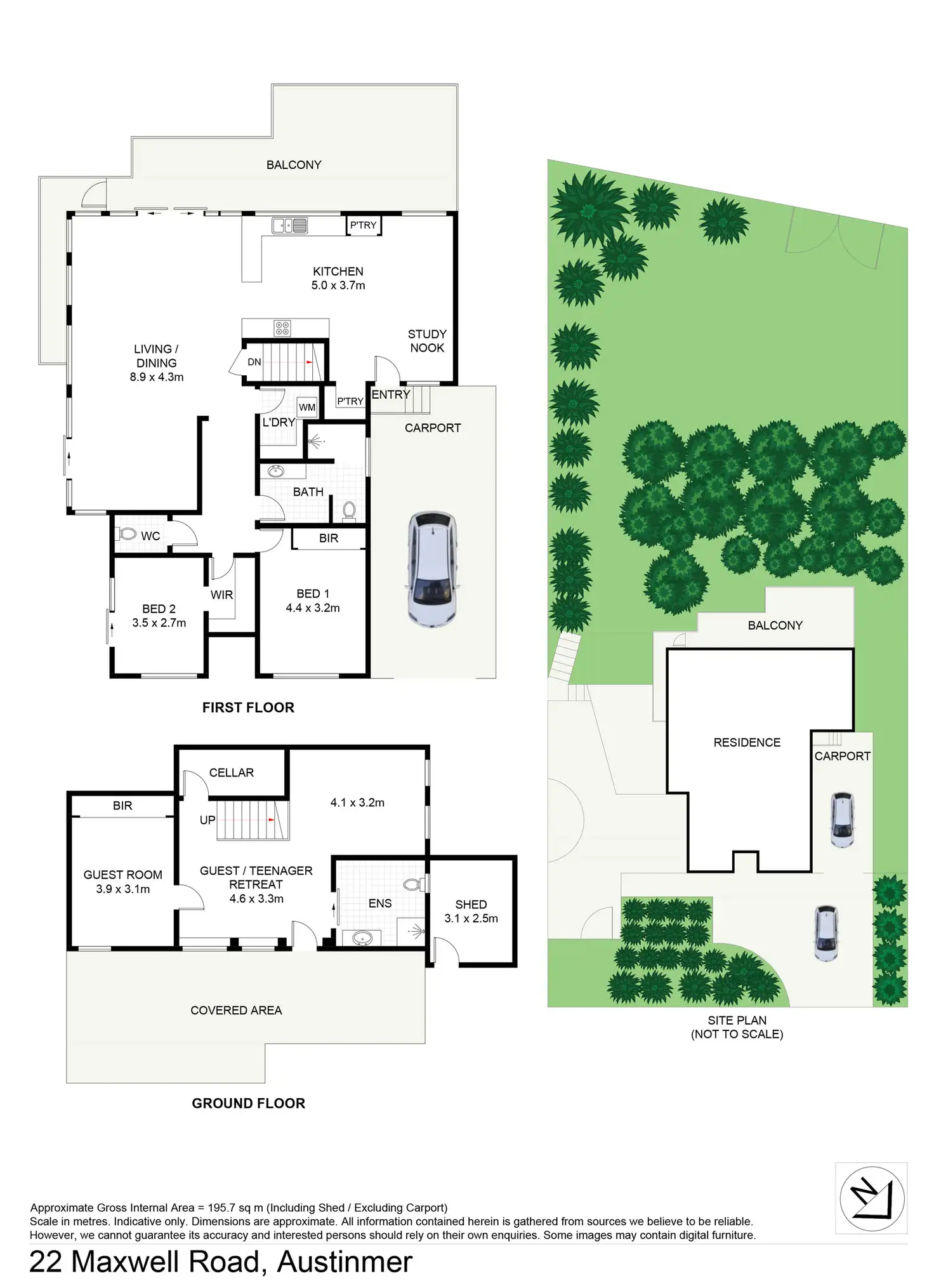 - Private leafy rear deck captures afternoon sunshine, garden sheds x 2