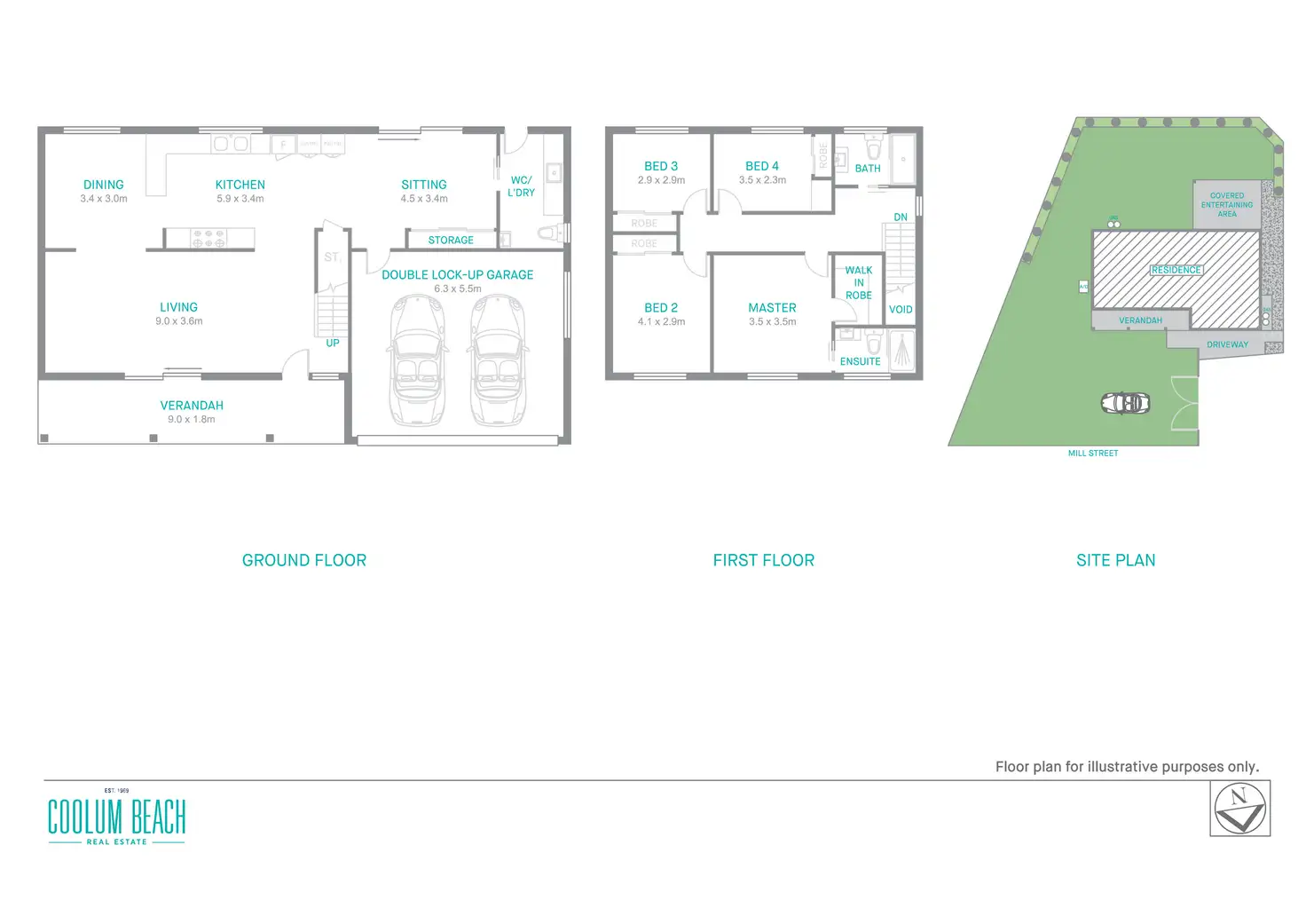 An open plan layout on the ground level seamlessly combines the kitchen, dining and living rooms and spills out both front and rear to the huge, fully fenced grassed yard with a north-facing verandah on one side and a covered