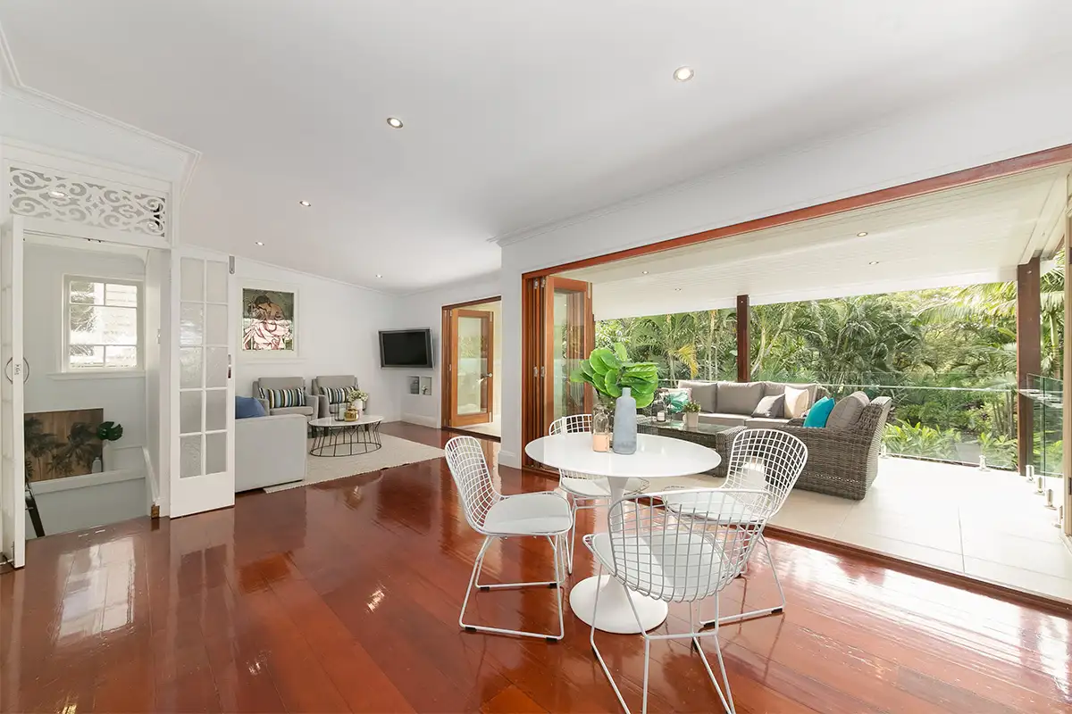 Beyond the classic façade of this traditional Queenslander lies a stunning designer sanctuary of superior style and quality where the needs of the family and a focus on entertaining have been at the core of its reinvention. Walled and fenced from the street, it delivers an extraordinarily peaceful and private sanctuary surrounded by stunning award-winning gardens which were the recipient of Jamie Durie's 'Australia's Best Backyard' Award.