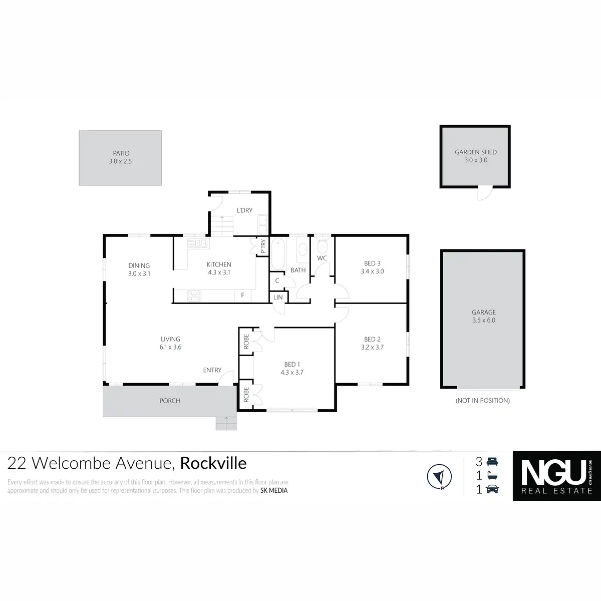 3 Bed • 1 Bath • 1 Car • 739m²