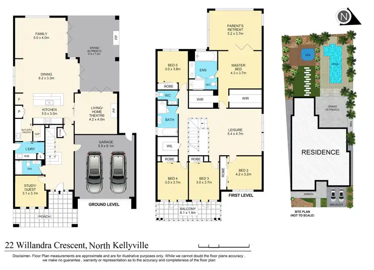 Accommodation comprises of 5 superb bedrooms with potential 6th on the ground level. The master bedroom is a suite of its own with impressive ensuite, his and her walk-in robe and large parents' retreat. The other 4 beautifully appointed bedrooms include built in robes and central luxury designed bathroom. Additionally, on the lower level tucked away entails a study, perfect for working from home or as a guest bedroom with easy access to full bathroom.