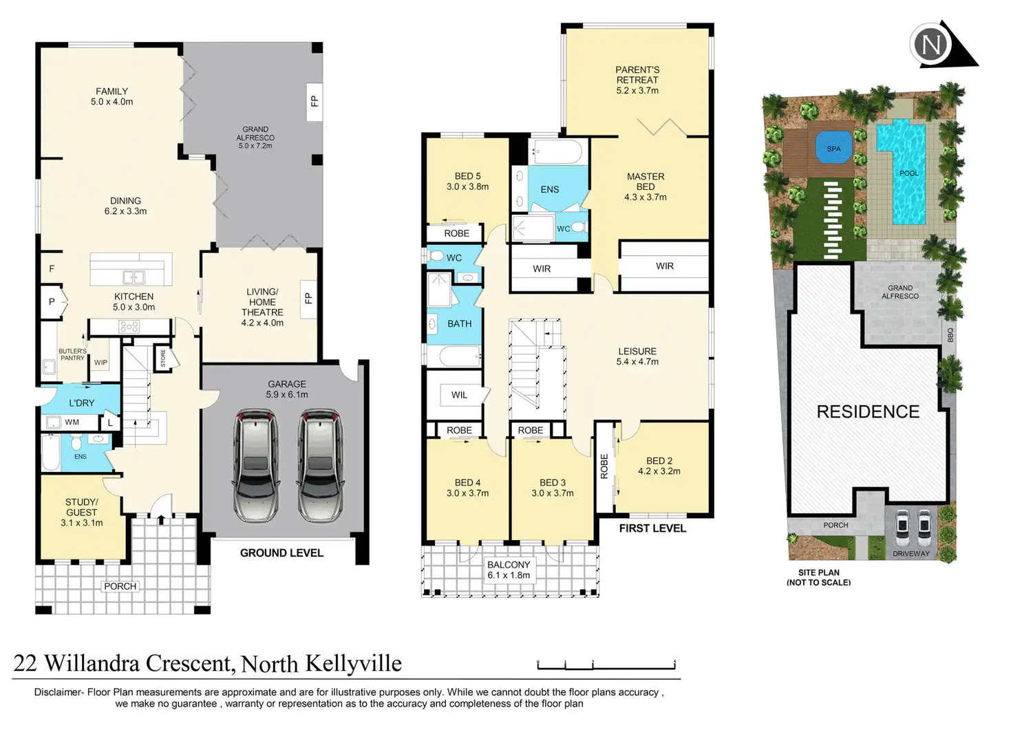 Two large family and living areas, home theatre room downstairs as well as a upstairs leisure space.