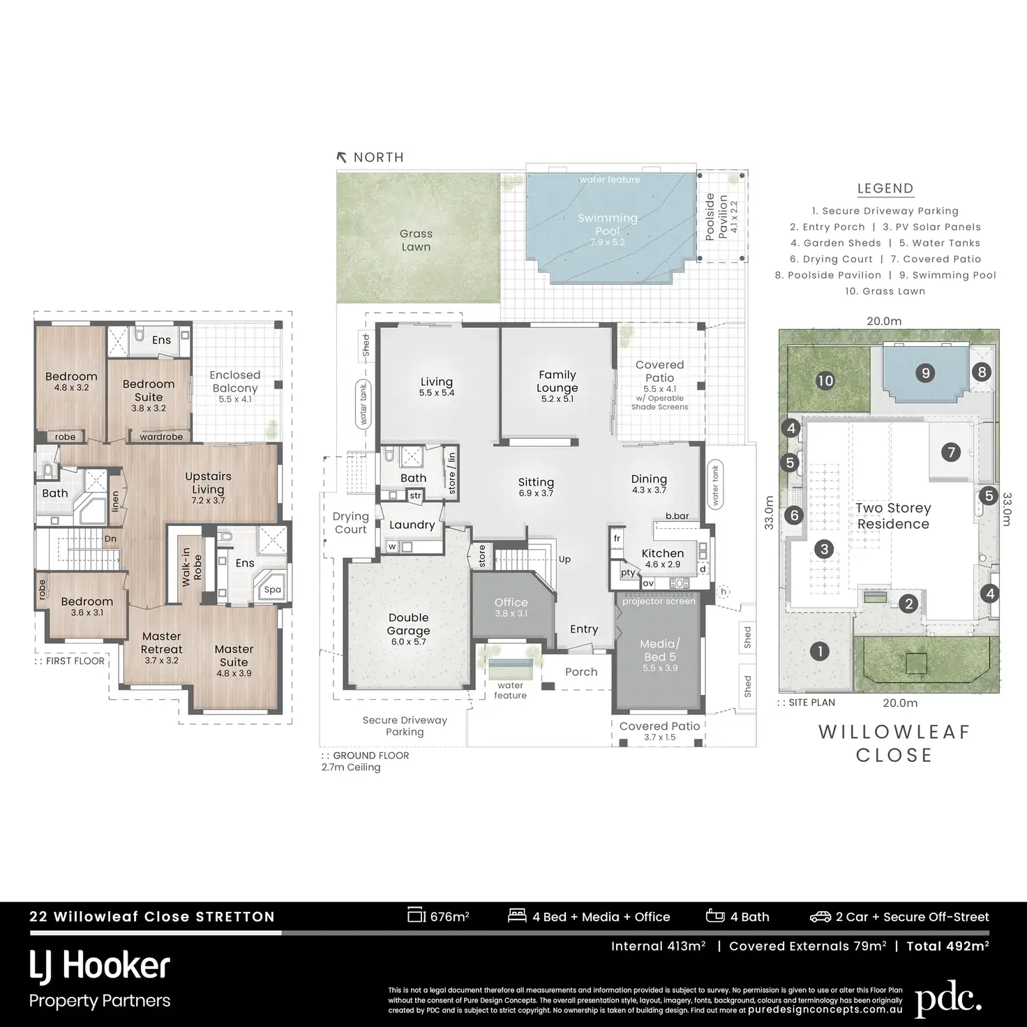- Equipped with high-end features like CCTV security, a media lounge with projector, fenced-off shed area, two water tanks, and PV solar panels.