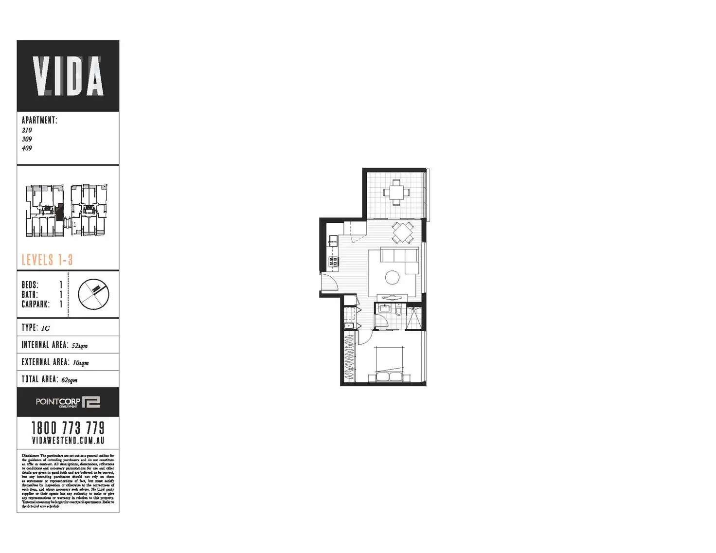 This modern apartment offers fully ducted air-conditioning, sizable balcony and urban chic design. Vida sits on a quiet tree-lined street.