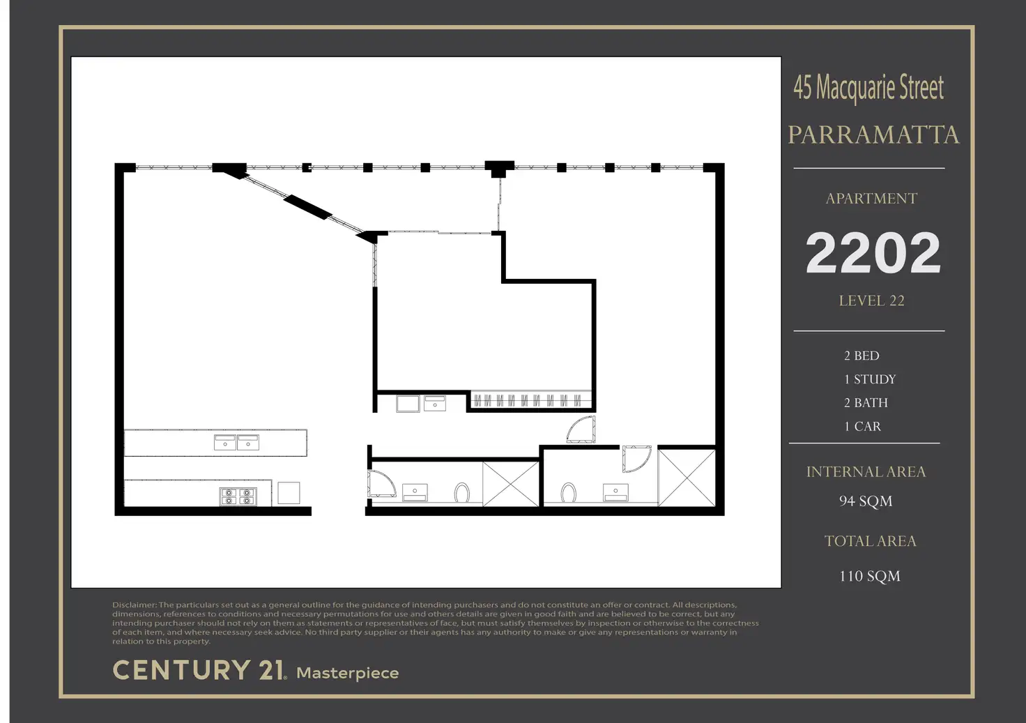 “94 sqm 2 Beds plus Study and luxury living in the heart of Parramatta”