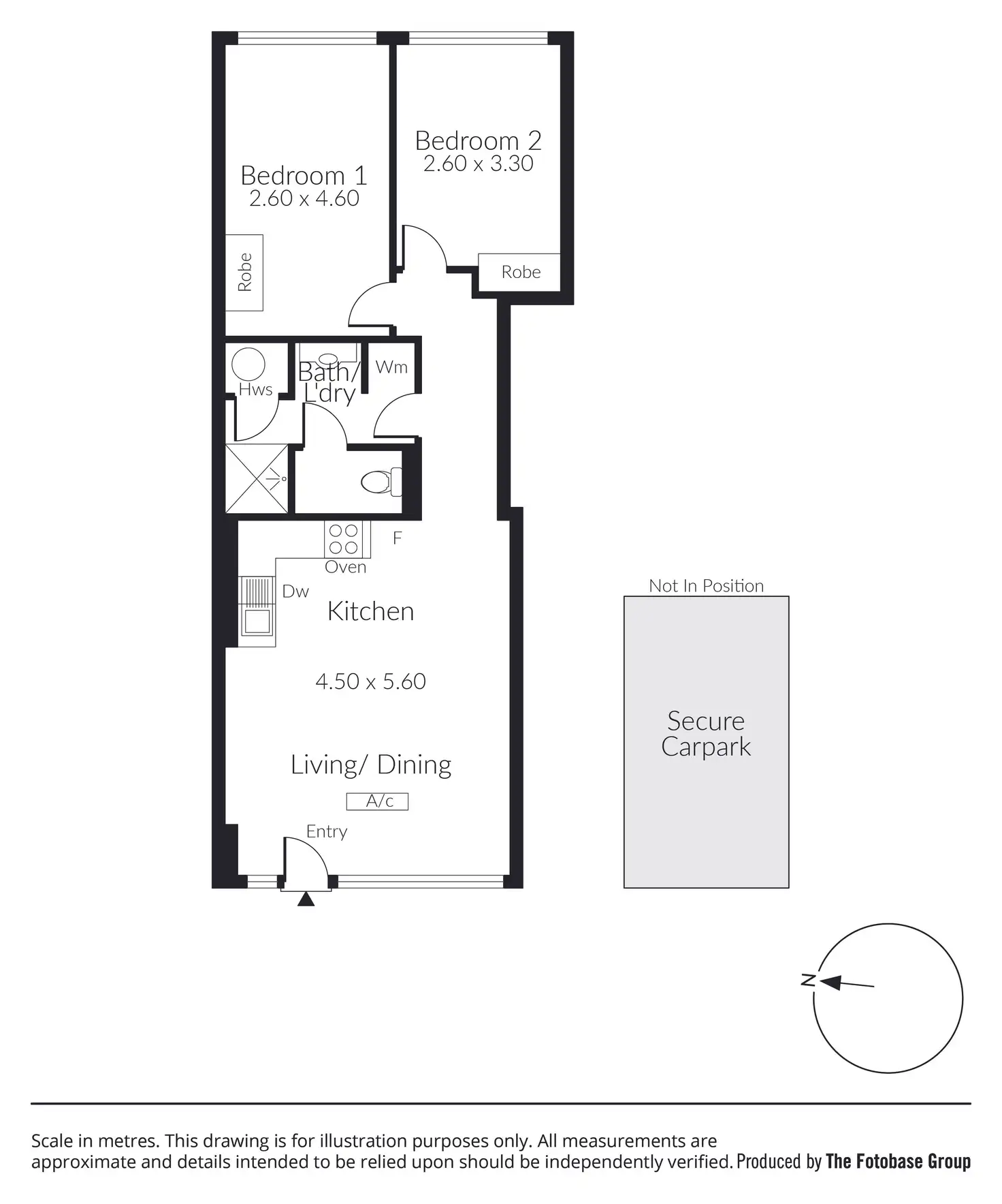 The bathroom comprises a vanity with storage, shower and separate w.c., and both the carpeted bedrooms are fitted with built-in robes and bathed in natural light from the East-facing windows.