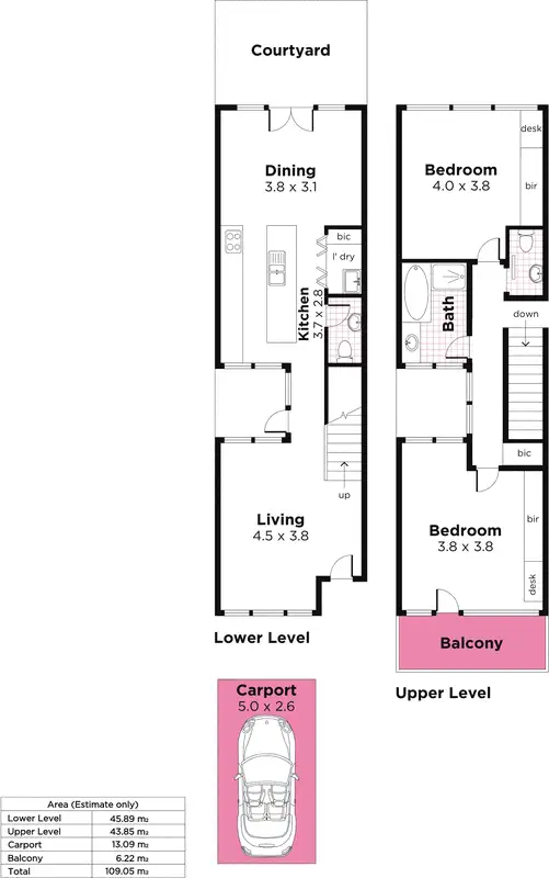 2 Bed • 1 Bath • 1 Car • 93m²