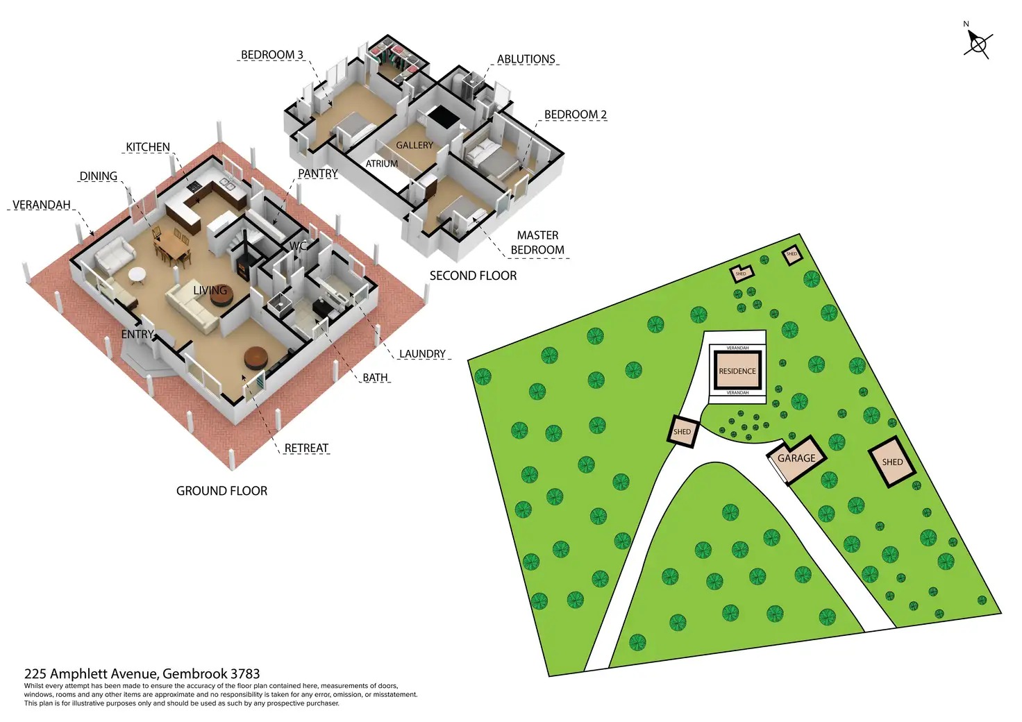 Upstairs, the spacious landing overlooks the living area below, and leads to three generously sized bedrooms, each equipped with ceiling fans. The master suite offers a private powder room, and split system air conditioning for added comfort. A separate shower is also located on this level.