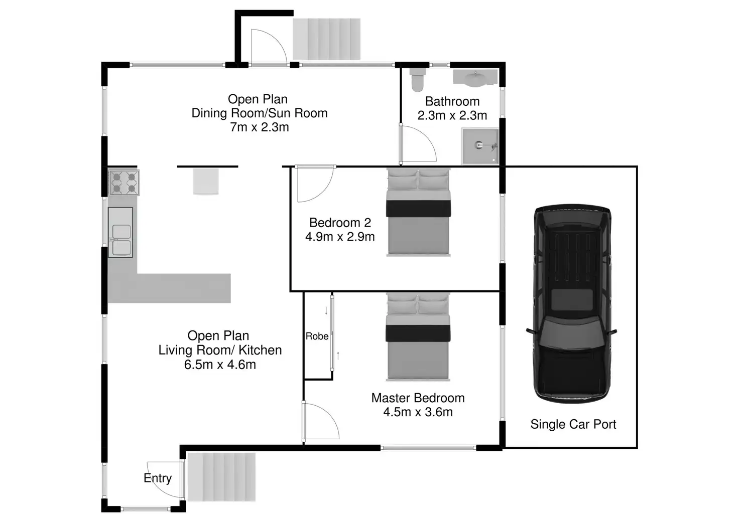 2 Bed • 1 Bath • 1 Car • 607m²
