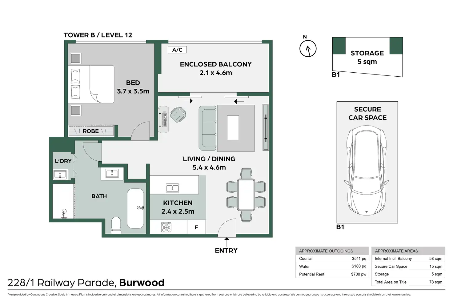 1 Bed • 1 Bath • 1 Car • 78m²