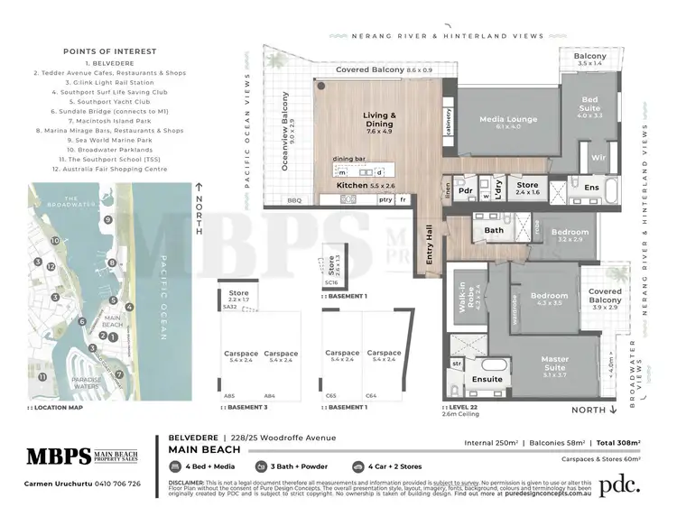 Main Beach, with its proximity to excellent Gold Coast Public & Private schools, including TSS and St Hilda's Schools, offers a variety of restaurants and cafes, Southport Yacht and Surf Clubs are within walking distance and nearby are Marina Mirage, The Sheraton Mirage, The Broadwater Parklands GC Aqua Park, Sea World and the Southport Aquatic Centre. The G:Link light rail station is closely situated off Tedder Avenue.