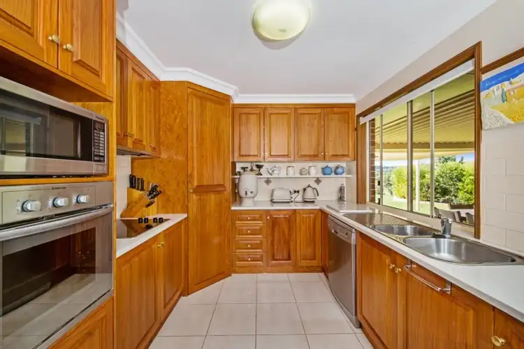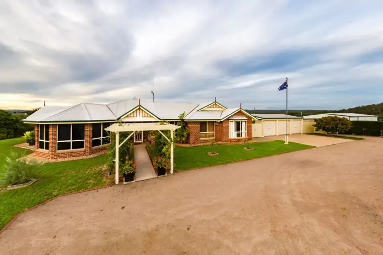 The home is ideally located on the highest point of the property, offering views over the entire 50 acres and over picturesque countryside to the ranges beyond. Complete with four bedrooms, two with bay windows including the Master with new carpet, WIR and Ensuite. The remaining three bedrooms have BIR's. Heaps of storage cupboards along with an office nook down the hallway as well as plenty of cupboard space in the large, well appointed laundry. Although, because of the home's location, natural breezes are common, there is Reverse Cycle Air Conditioning in the living area along with two gas points for the cooler months if required. The outdoor living area also has a convenient gas point for the barbie and is semi-enclosed to maximise year round usage. The entire living area has been retiled in recent years and is complete with Skylights. The exterior oozes 'country style' with stained glass and timber features, gable rooflines, bay windows and patterned brickwork.