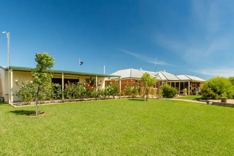 Cars are taken care of by the 9m x 6m (3 bay) colorbond shed at the house. This shed has a toilet, is fully concreted and powered and has a 9m x 3m skillion roof along the northern side, surrounded by established gardens and manicured lawns adding appeal to those who love to entertain. A larger 14.5m x 7.5m shed is powered and half concreted the remaining section of packed gravel floor. Ideal for machinery/ workshop with shelves and benches to remain, this shed is complemented by 4.5m walls and a full length 14.5m x 4m skillion roof able to accommodate a caravan or gooseneck. The stable adjoins the cattle yards along with a round yard and has a Vet Crush and independent rain water tank. The cattle yards have a 4 way draft as well as a loading ramp for trucks along with a ramp for a gooseneck or float.