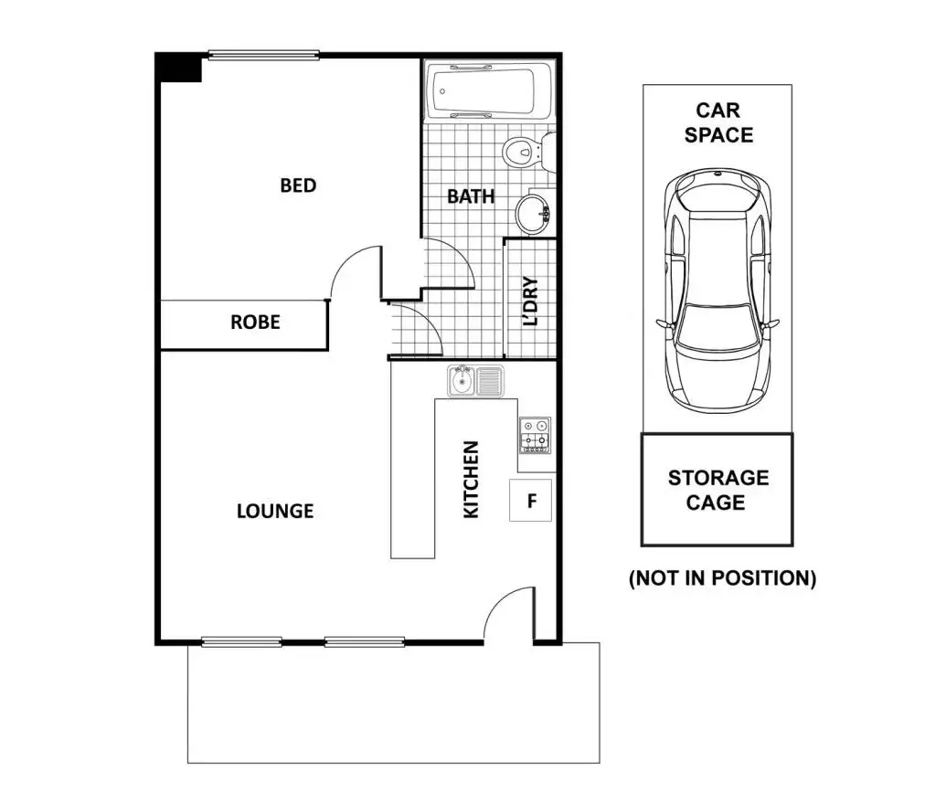 This large one bedroom apartment has mirror glass wardrobe doors. The granite bench top in the kitchen is fitted with electric hotplates, under bench electric oven, and a dishwasher. The bathroom has a 2-way entry point from the bedroom or the lounge area.