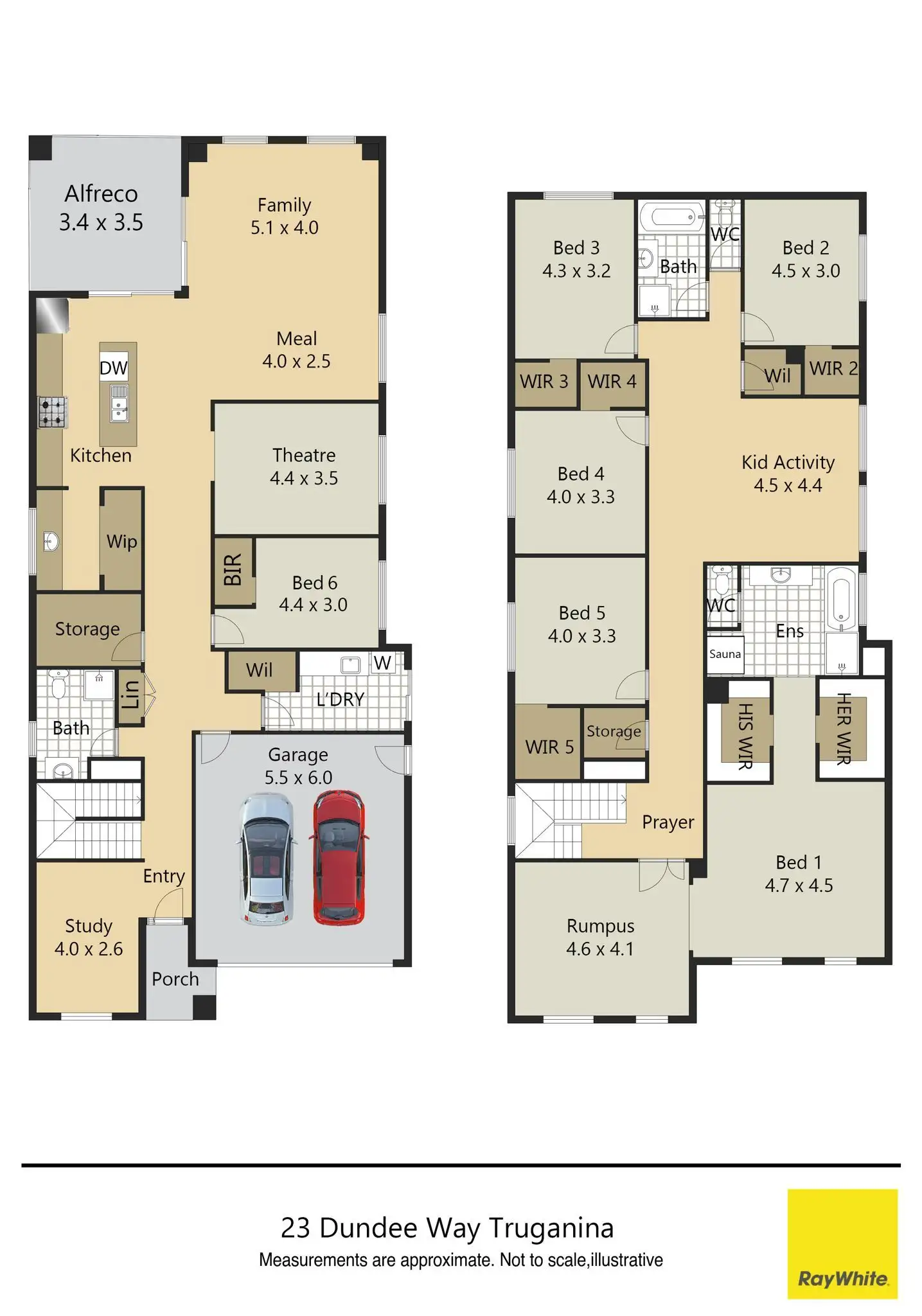 An accommodating floor plan comprising 6 large bedrooms and 3 stunning bathrooms with walk-in robes. Perfectly configured with 5 bedrooms upstairs with wall-to-wall robes, a master suite with his/her walk-in robe, a sleek ensuite with sauna, and a gorgeous master downstairs with build in robes.