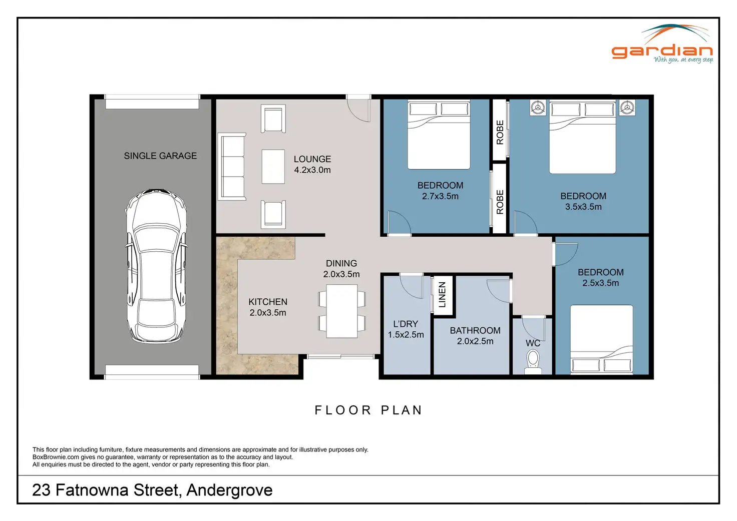 3 Bed • 1 Bath • 2 Car • 760m²