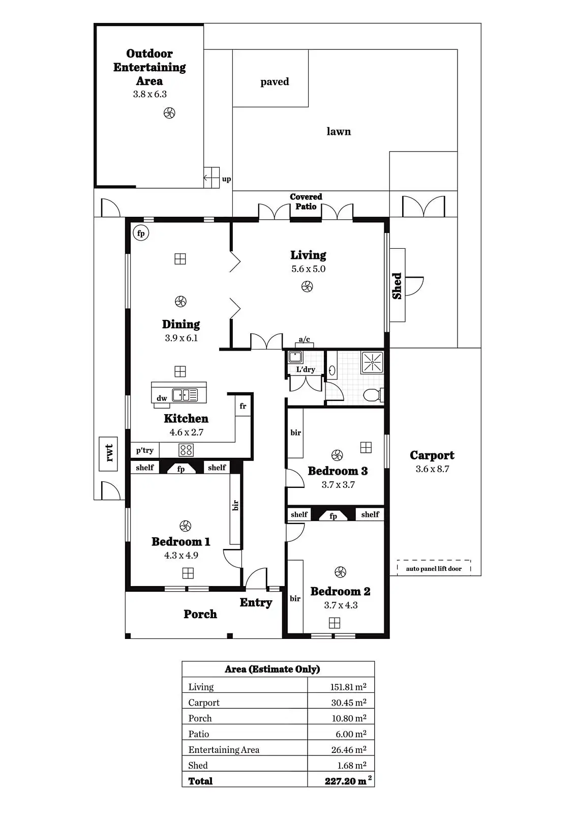3 Bed • 1 Bath • 2 Car • 491m²
