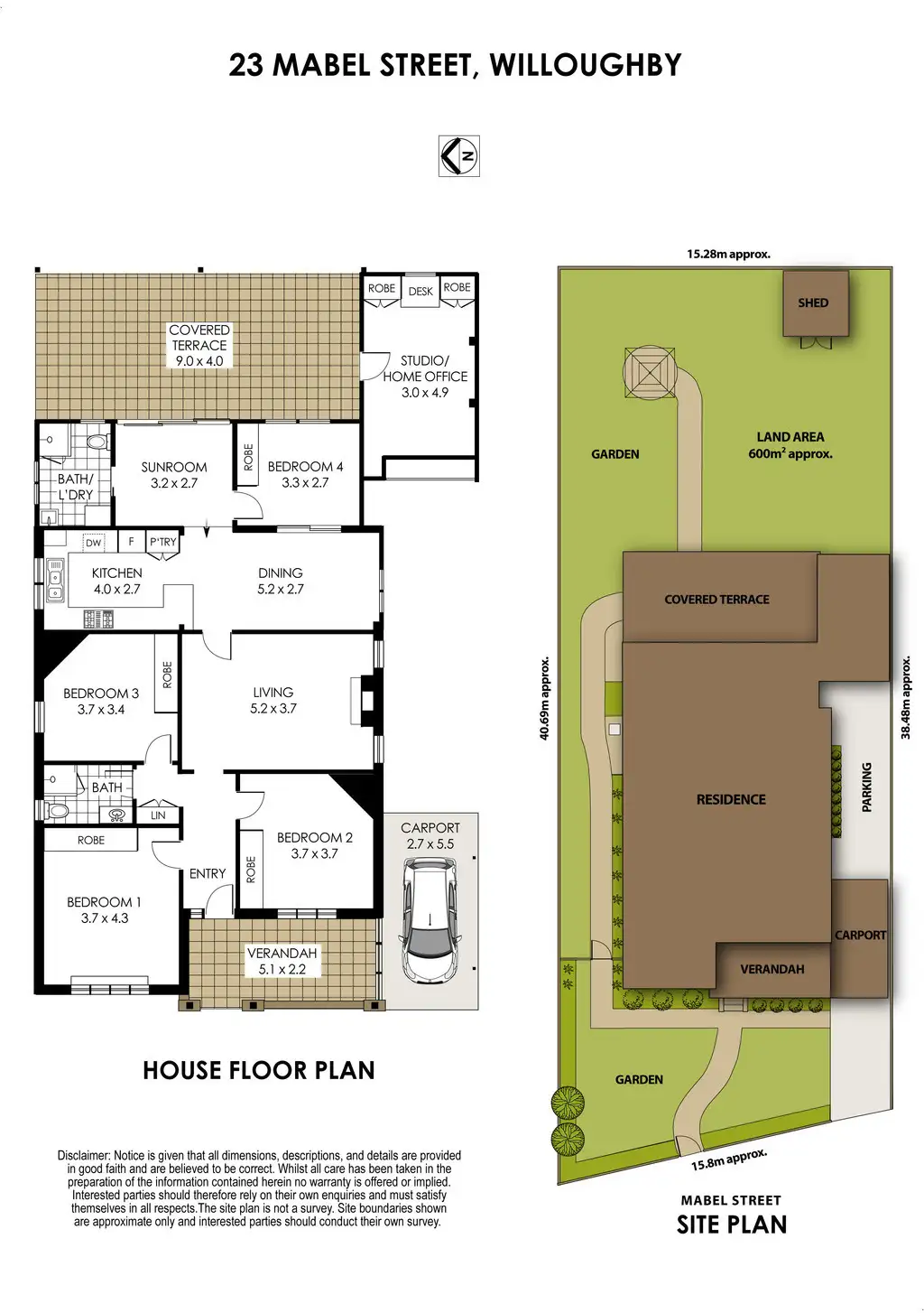 4 Bed • 2 Bath • 2 Car • 600m²