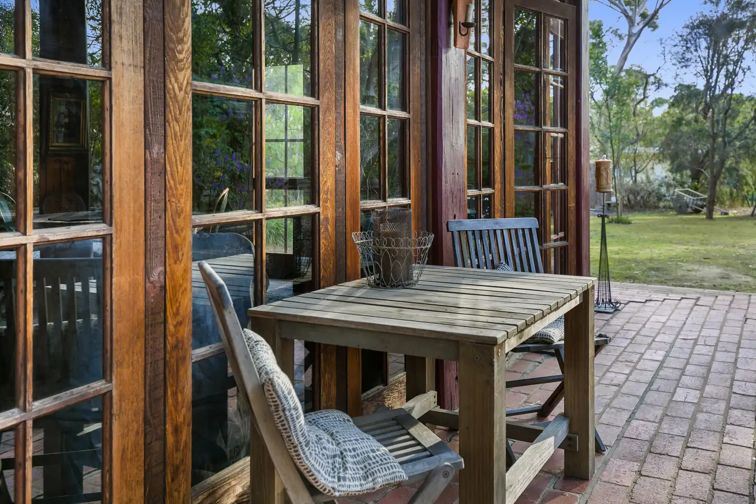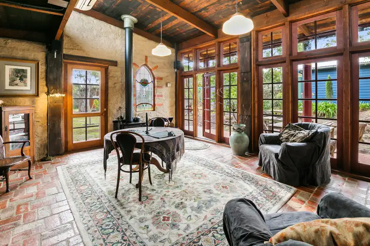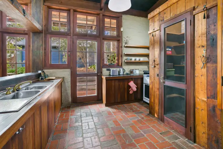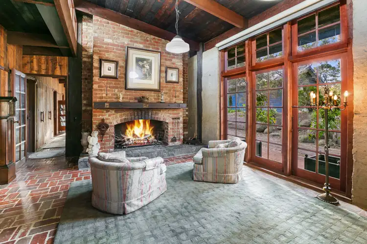 A substantial & rich timber frame constructed from railway bridges, only the finest mud brick infill, honest but tasteful brick flooring, slate and bluestone features, lead light windows, raw exposed beams, admirable timber paneling and an inviting open fireplace, all have stories to tell. Further complimented by brass tapware and natural light flooding through the elegant floor to ceiling, colonial windows.