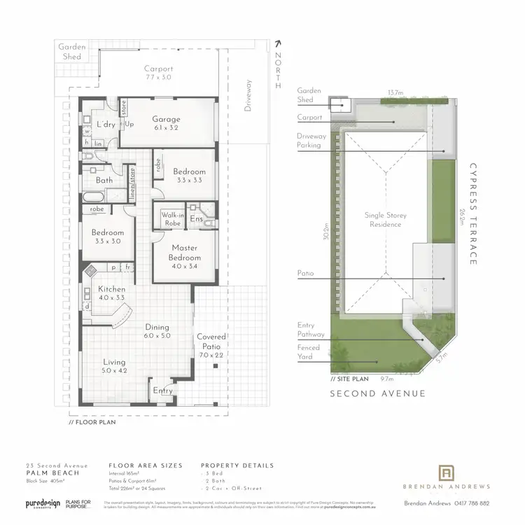3 Bed • 2 Bath • 2 Car • 405m²