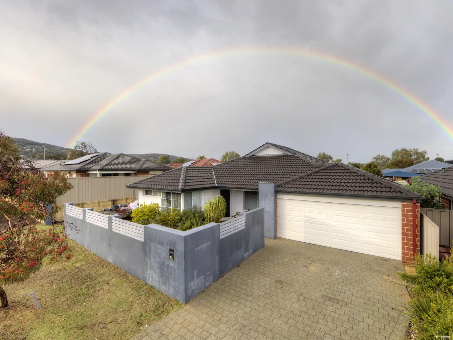 The solid front fence, open to a remotely operated double garage on one side, is also unusually also open to possible side access for potential secure caravan parking down the side of the house, (with minimum modification to the internal fence)!!