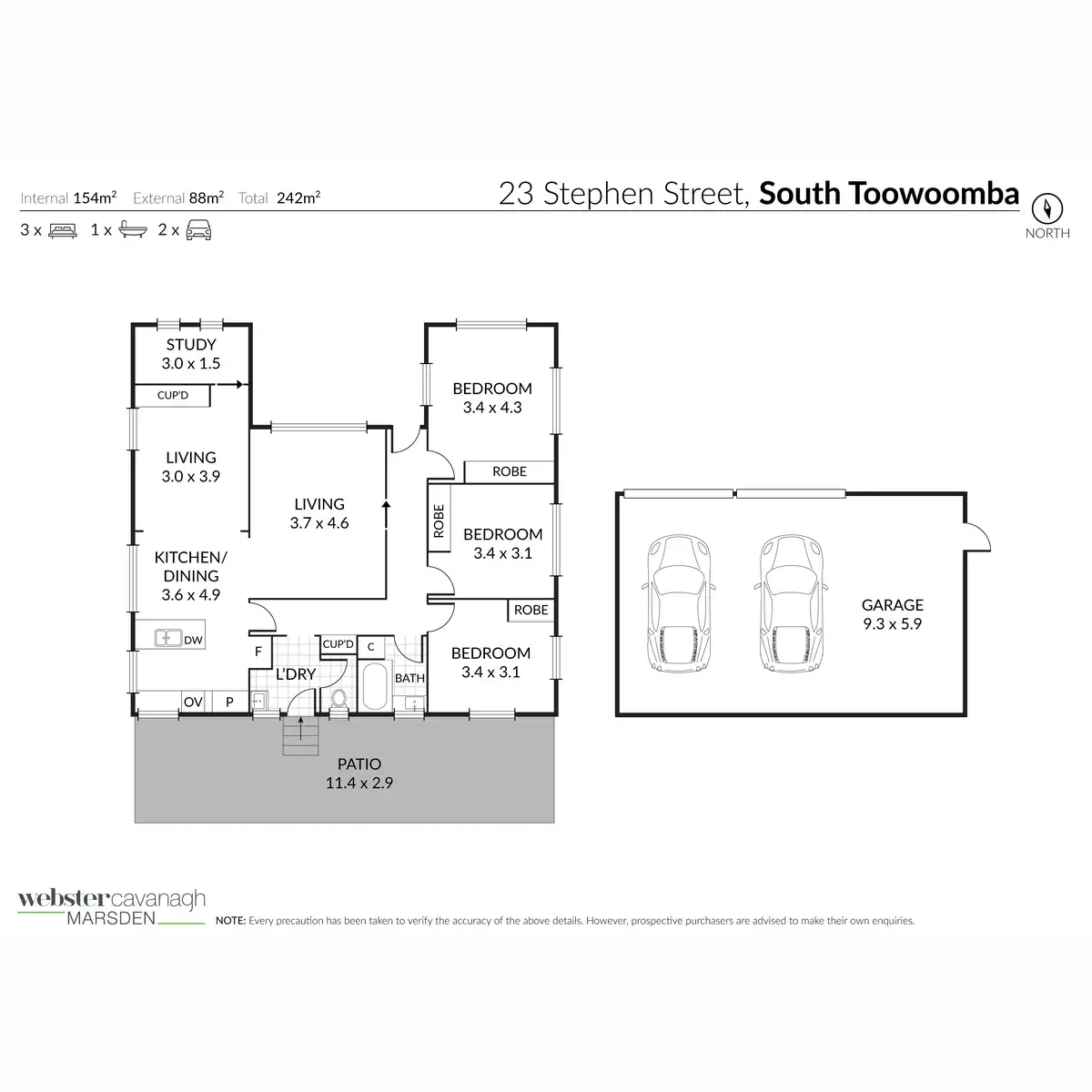 3 Bed • 1 Bath • 2 Car • 759m²