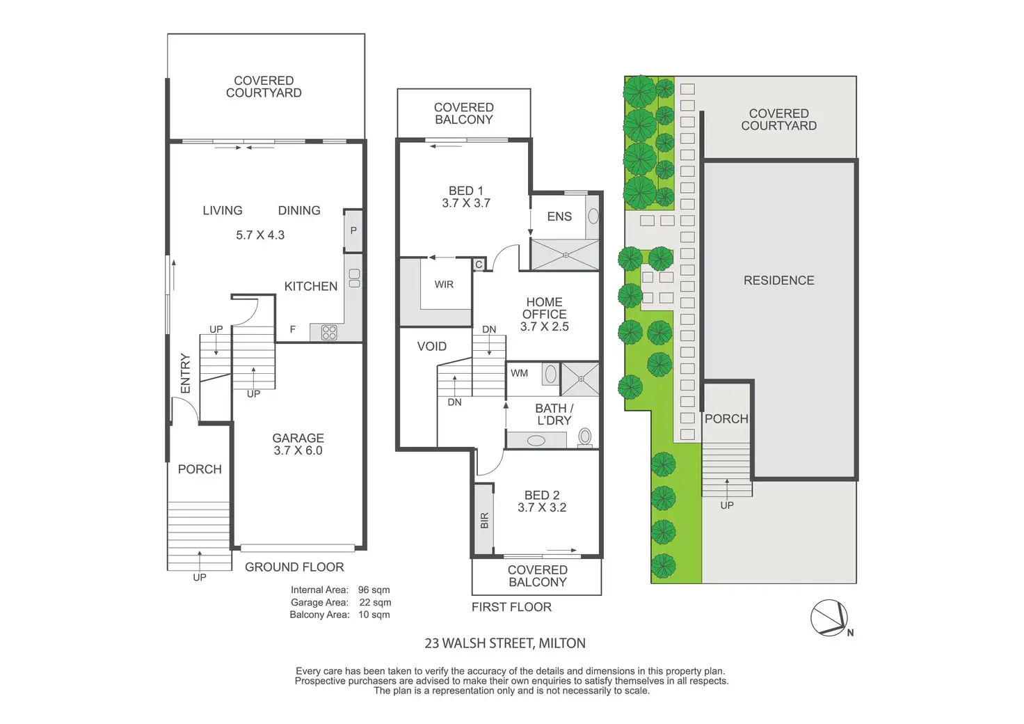 - Private courtyard off the living and balconies off each bedroom